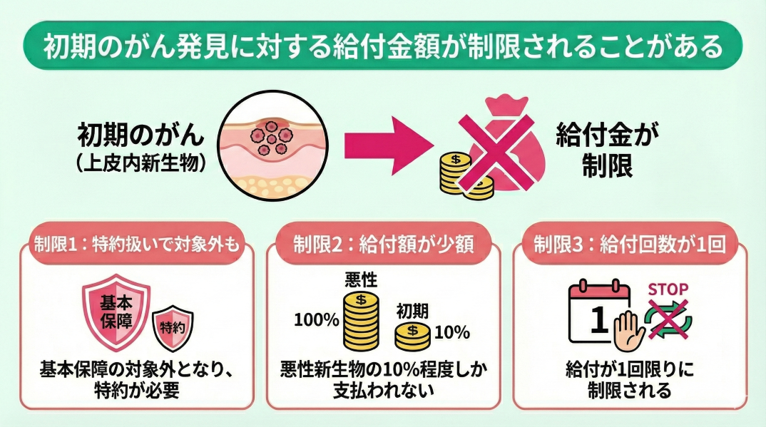 初期のがん発見に対する給付金額が制限されることがある