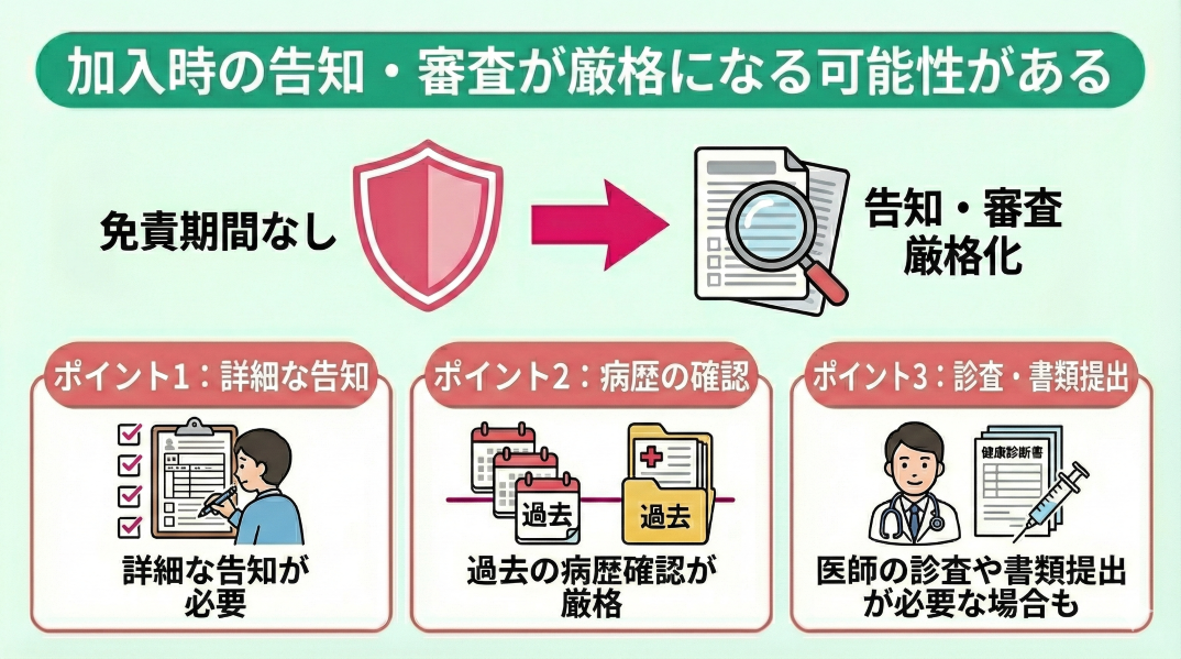 加入時の告知・審査が厳格になる可能性がある