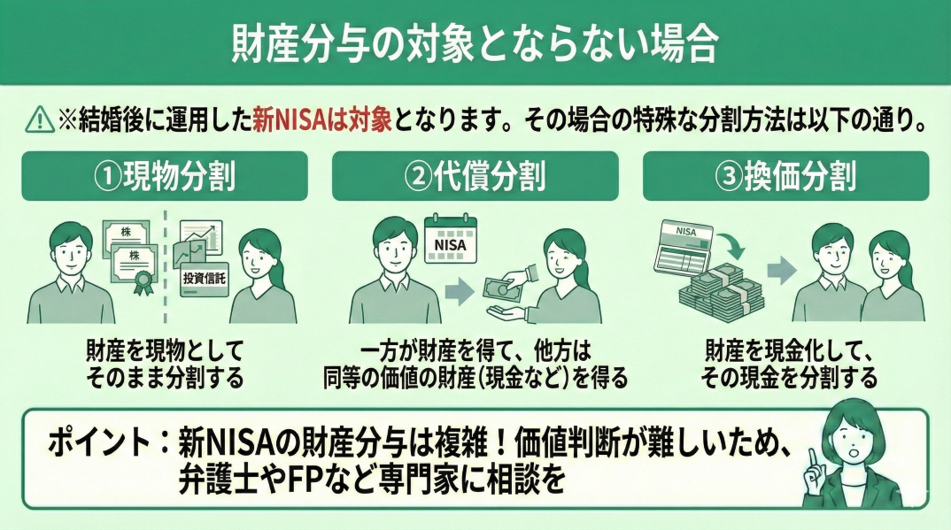 ▼新NISAの財産分与における価値判断方法