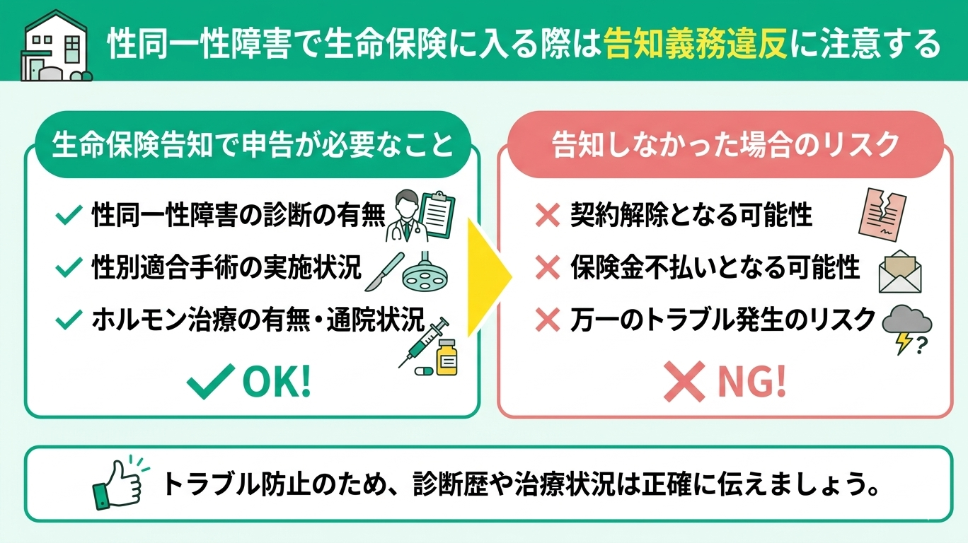 - 性同一性障害で生命保険に入る際は告知義務違反に注意する