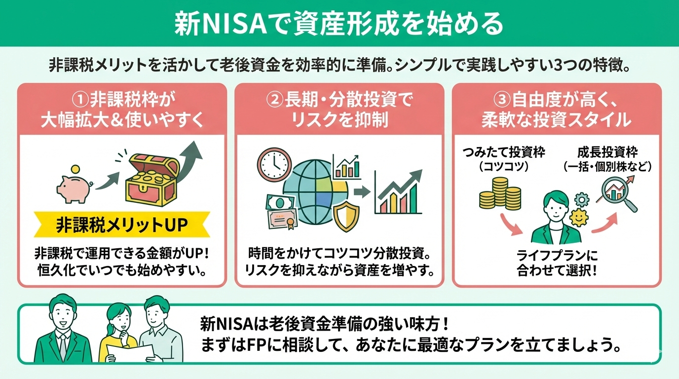 新NISAは、非課税のメリットを活かして老後資金を効率的に増やせる制度です。