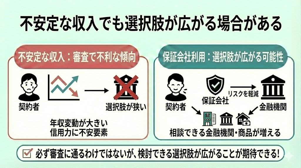 - 不安定な収入でも選択肢が広がる場合がある