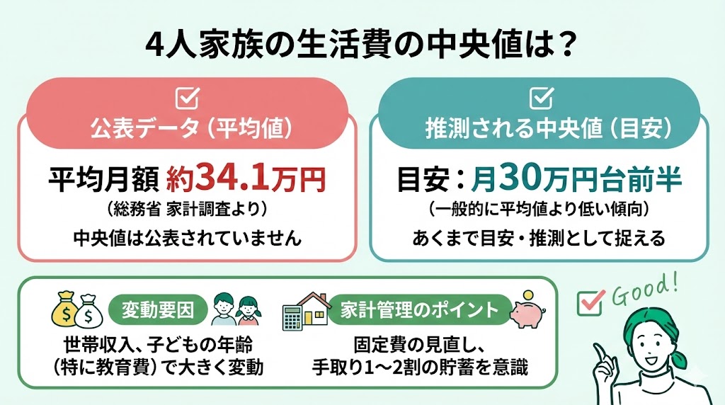 - 4人家族の生活費の中央値は?