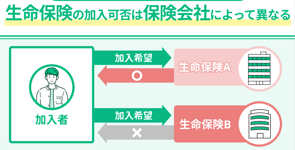 例えば、ある保険会社では加入を断られても、別の会社では条件付きで加入できる場合があります。