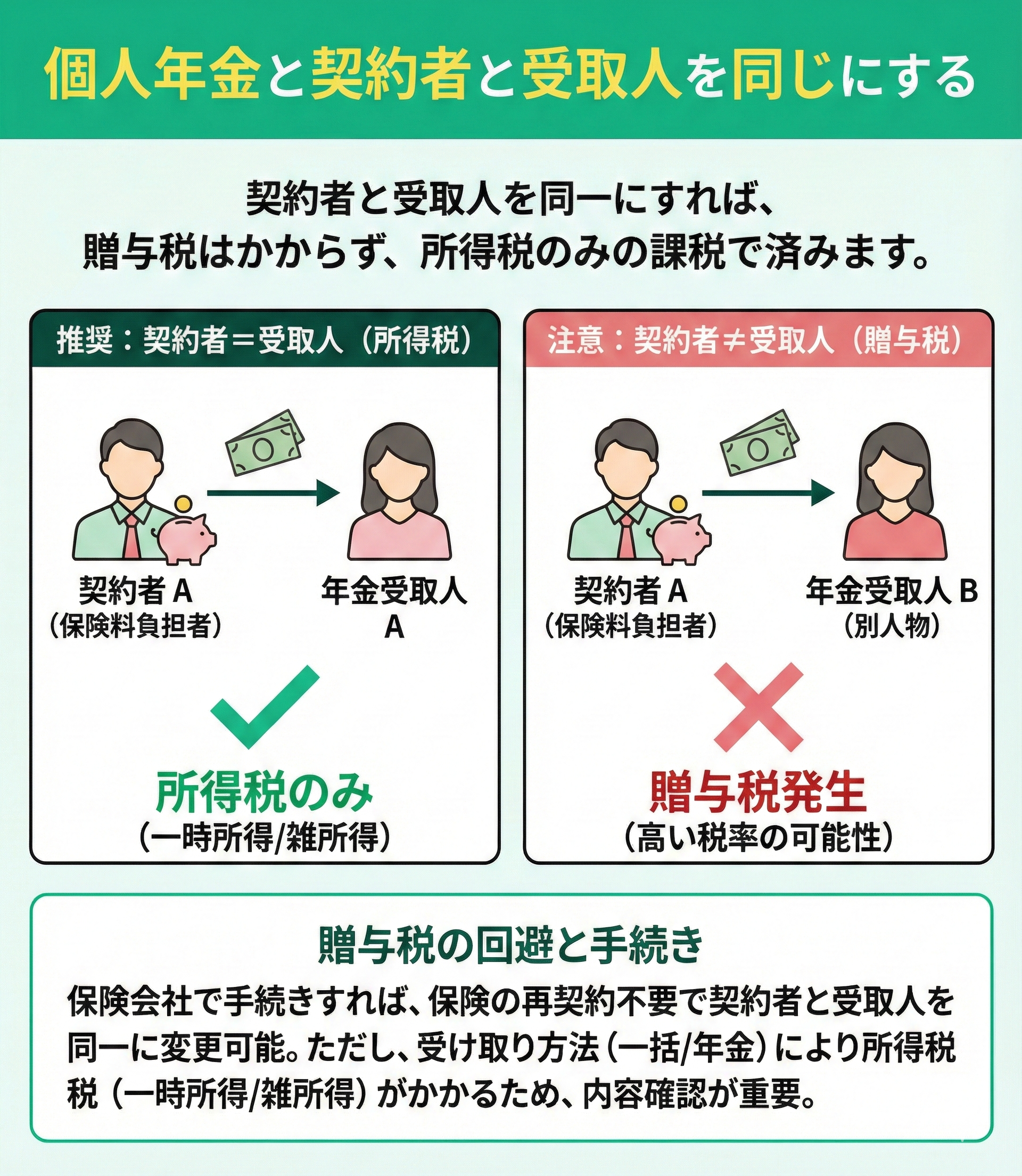 - 個人年金の契約者と受取人を同じにする