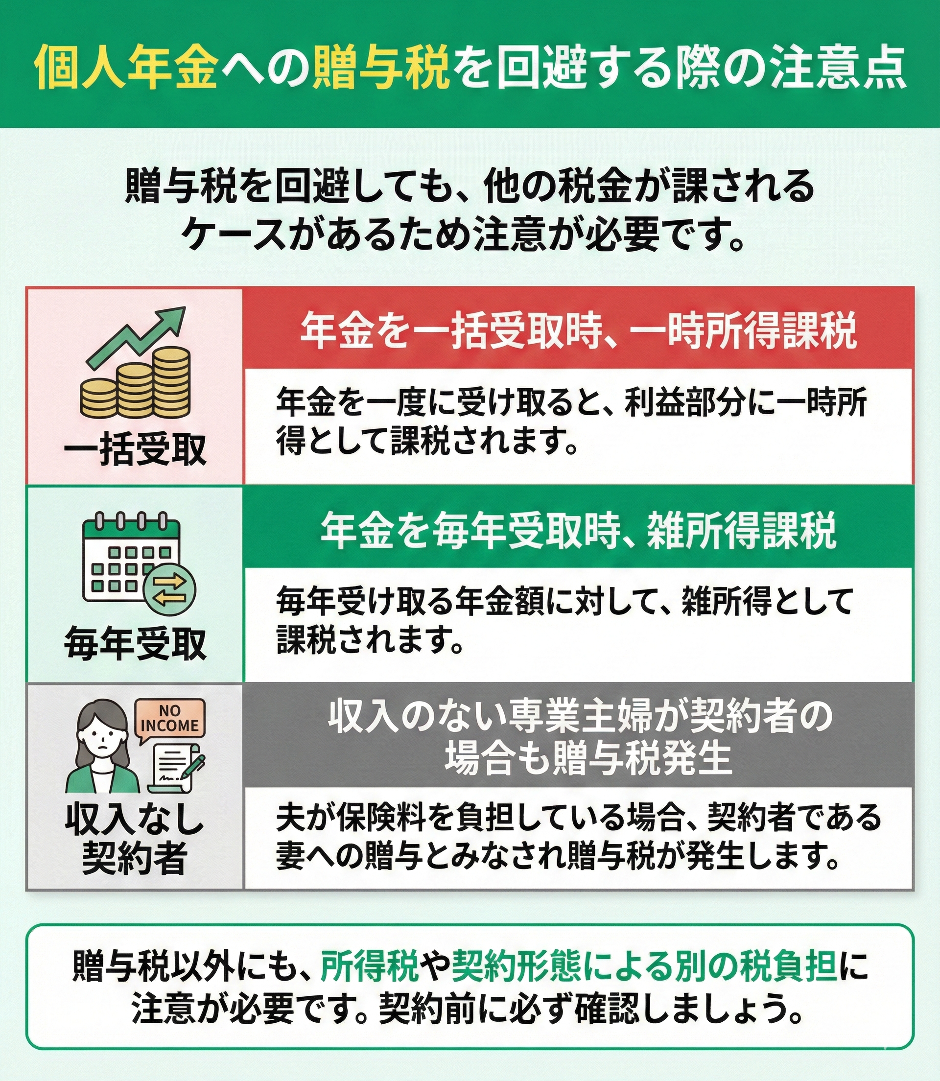 - 個人年金で贈与税が発生するパターンとその回避策