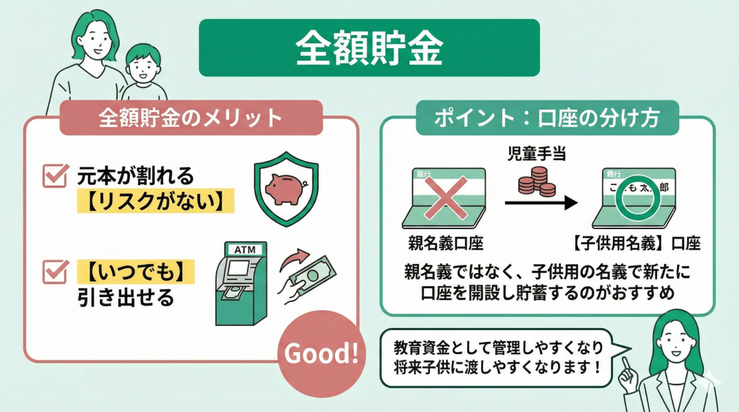 日々の生活費だけでなく、将来の教育費に備えるための“土台となるお金”として柔軟に活用できます。