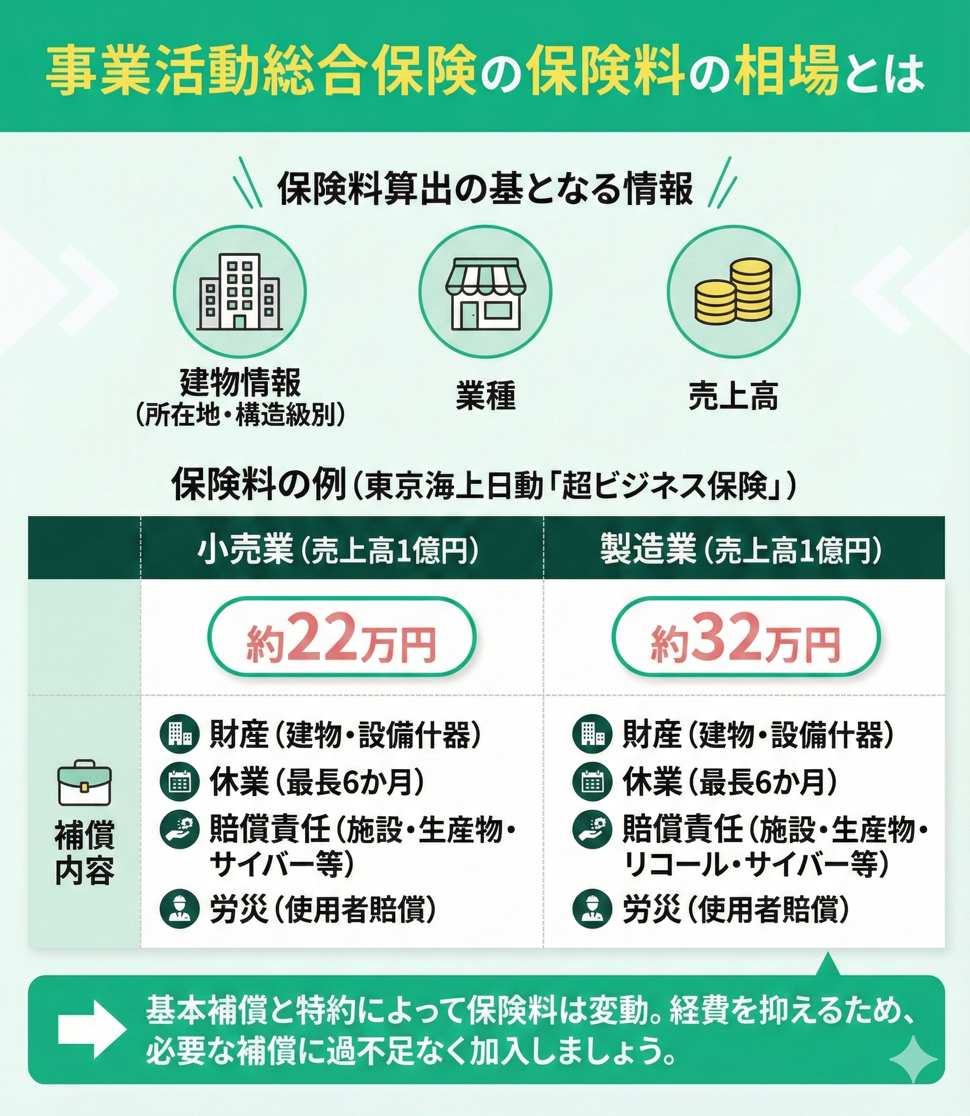 事業活動総合保険の保険料は以下の情報をもとに算出されます。