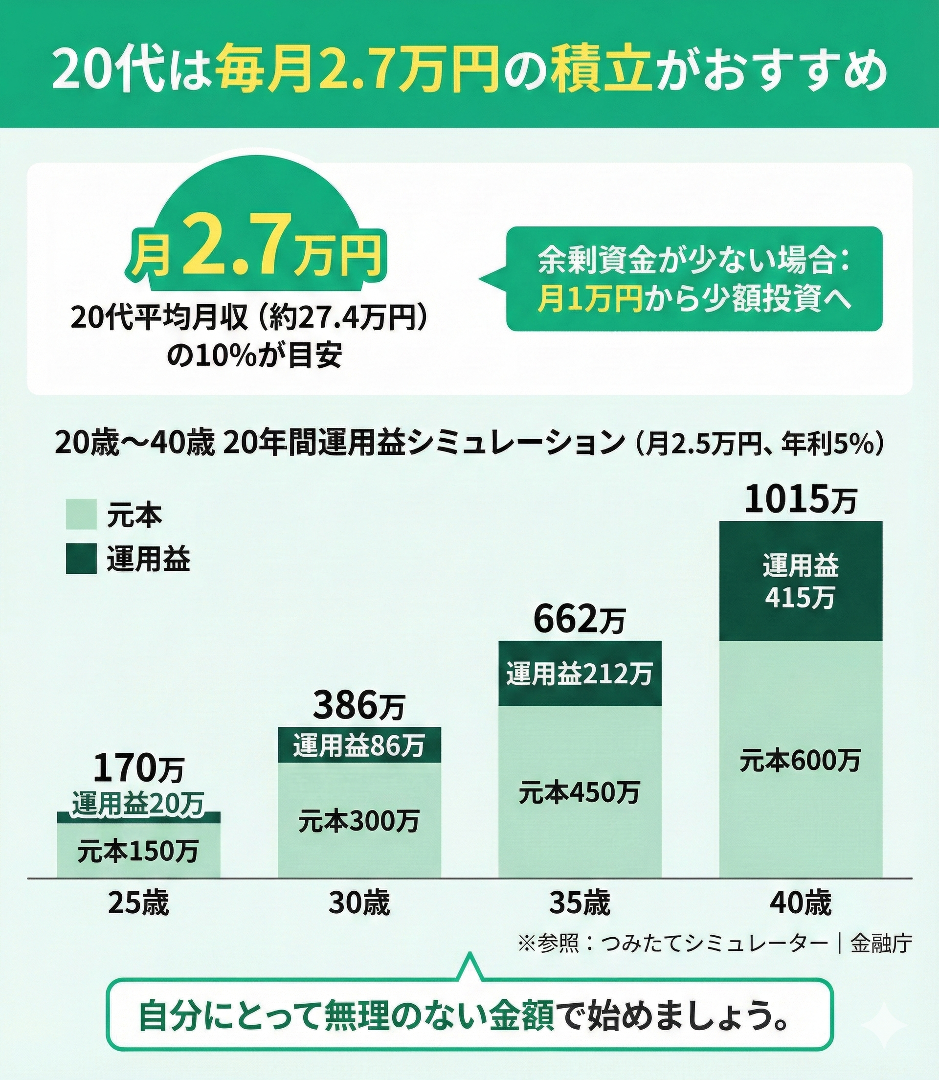 これは、20代の平均月収約273,735円の10%として算出しています。