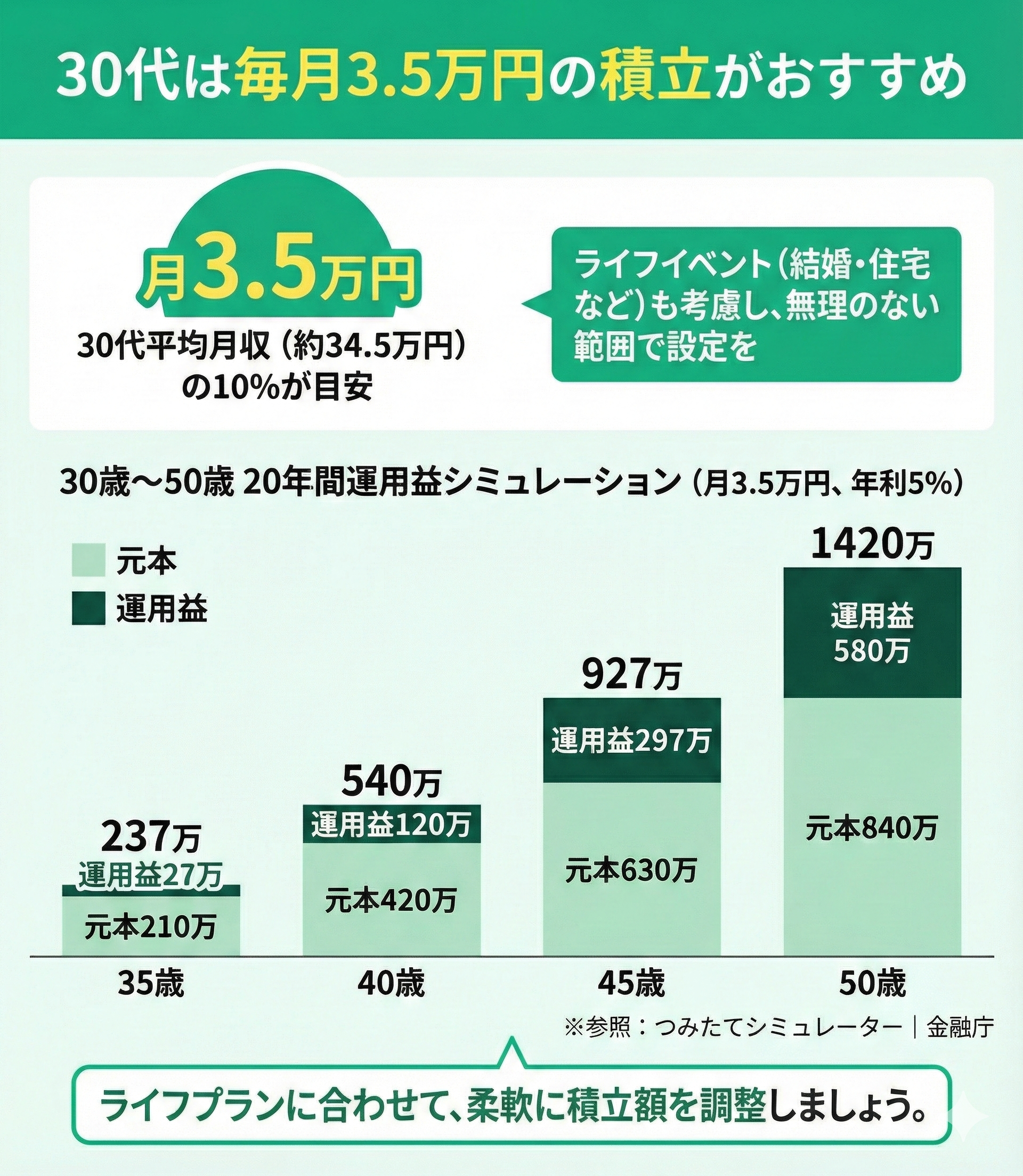 これは、30代の平均月収約345,195円の10%として算出しています。