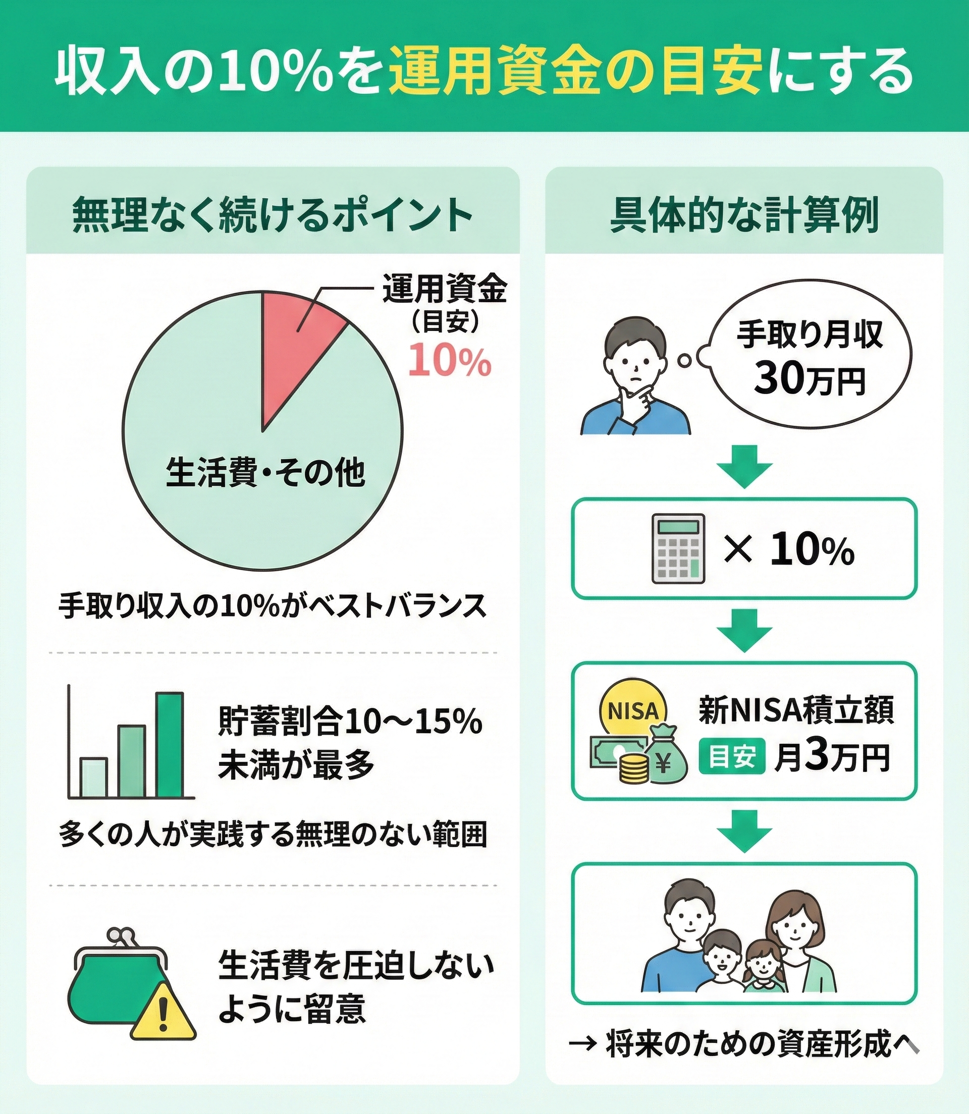 - 生活費を確保して無理のない範囲で積立額を設定する