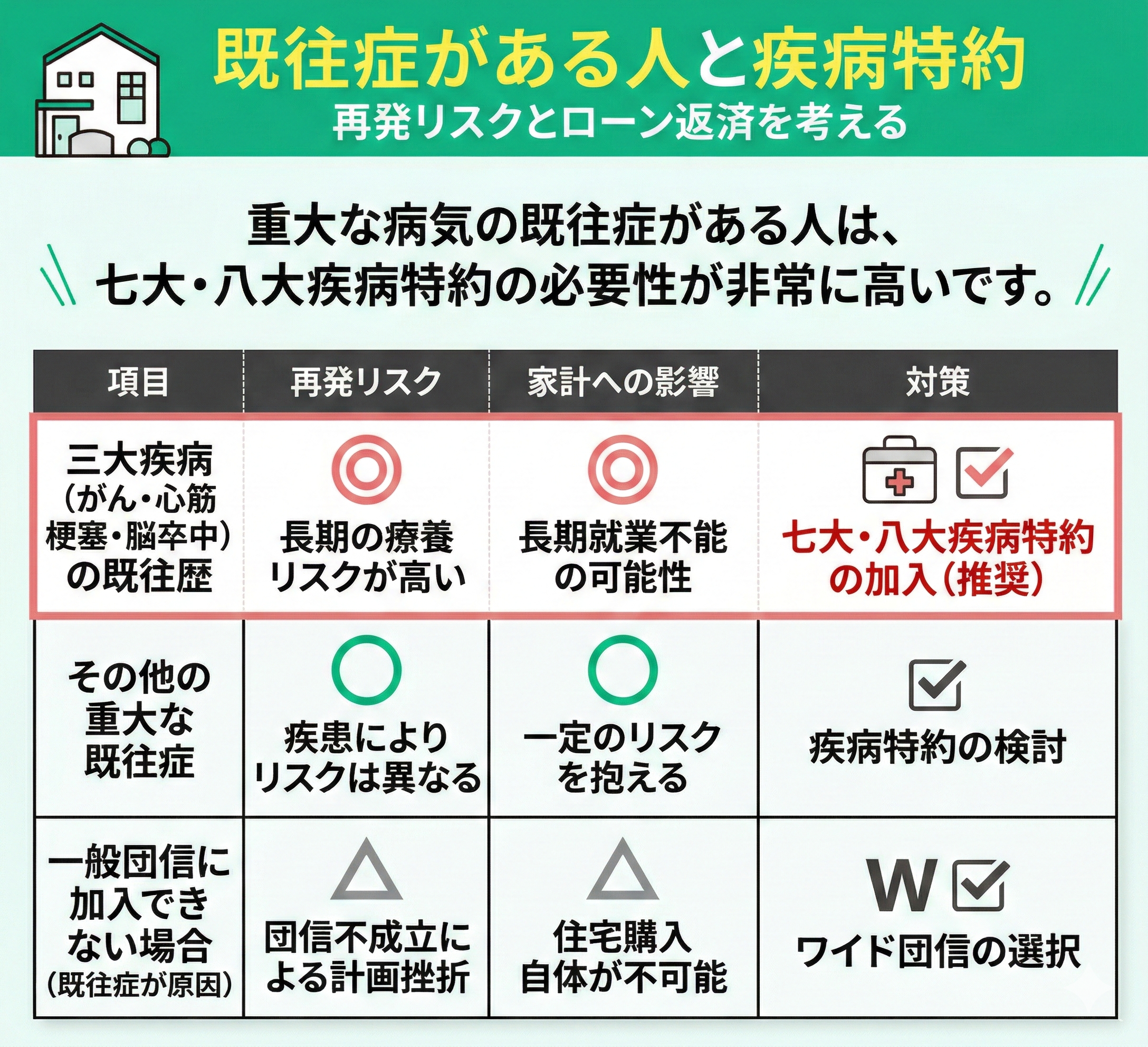 住宅ローン団信の七大・八大疾病特約の必要性が高い人