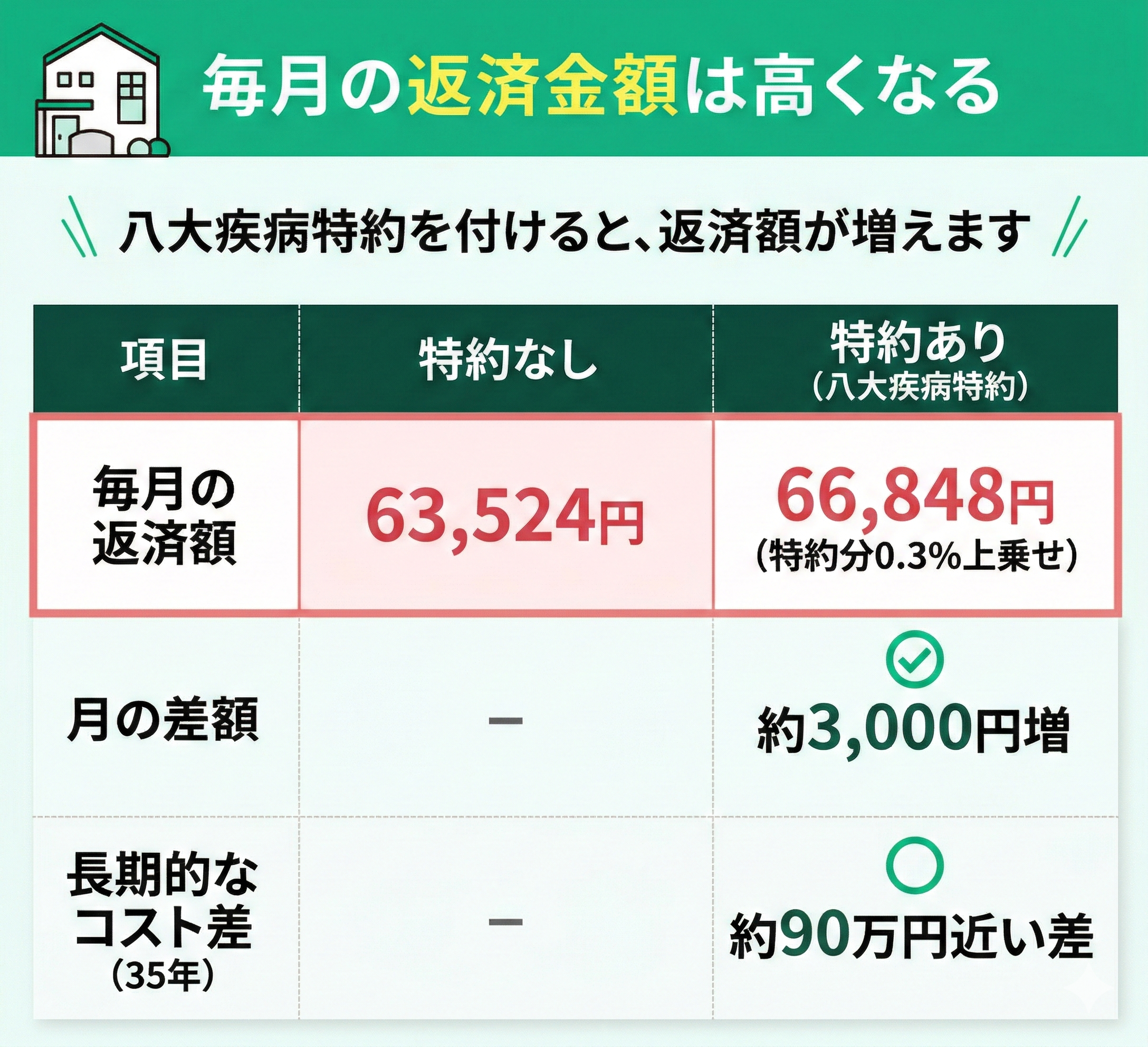 住宅ローン団信の八大疾病特約を付ける際には、毎月の返済金額が高くなることを知っておくべきです。