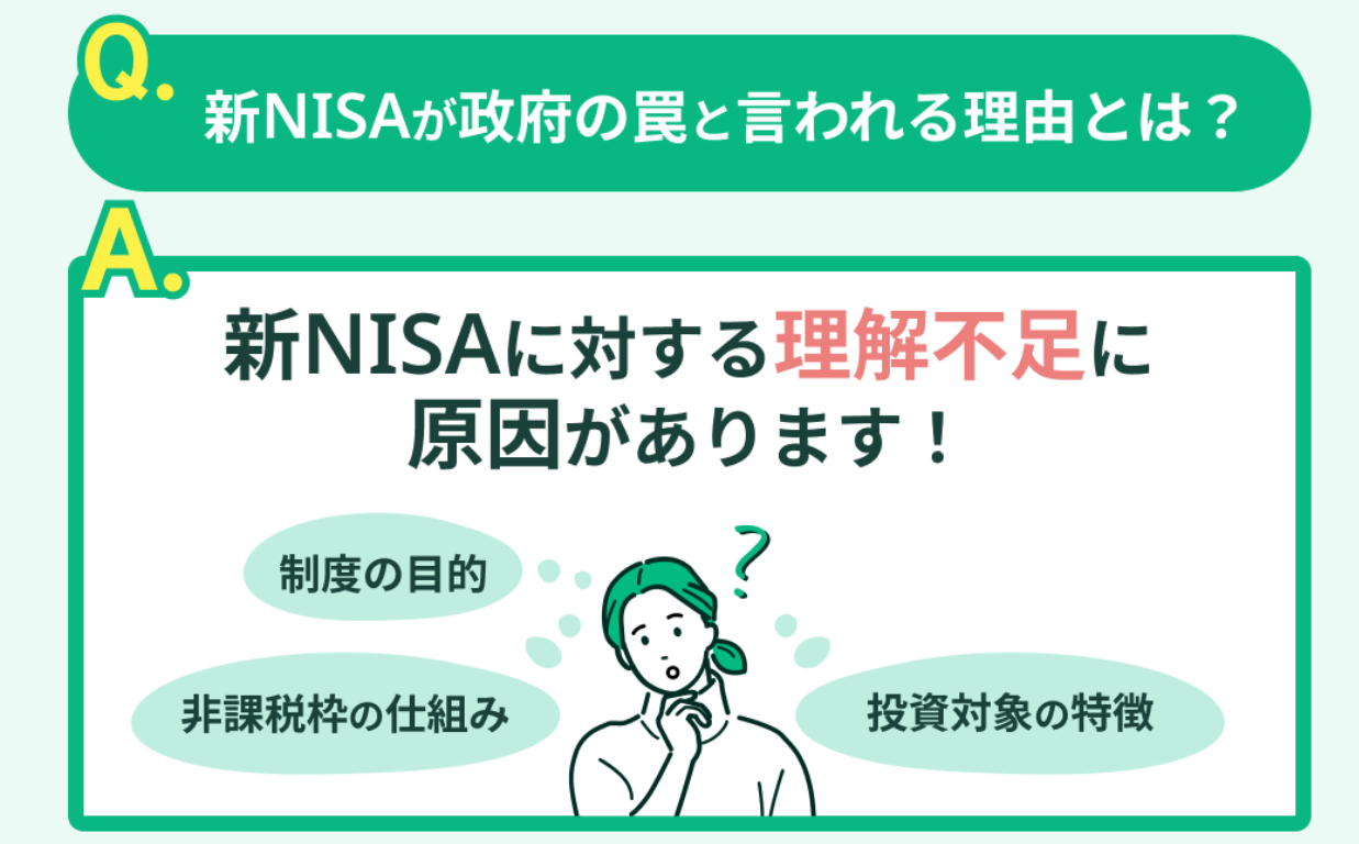 SNSやネット上にて「新NISAは罠」と言われる理由のひとつに、新NISAの制度に対する正確な理解の不足があります。