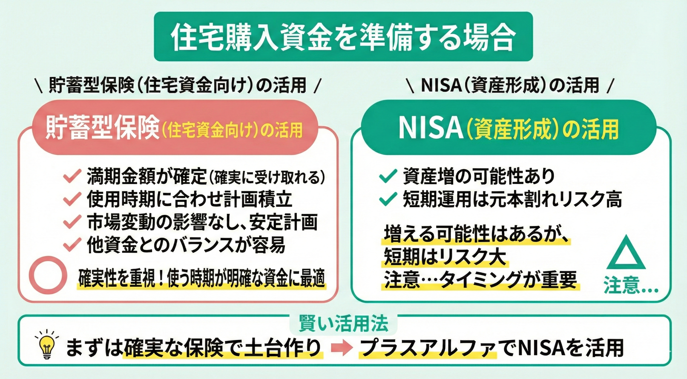 住宅購入資金の準備には、貯蓄型保険の活用が適しています。