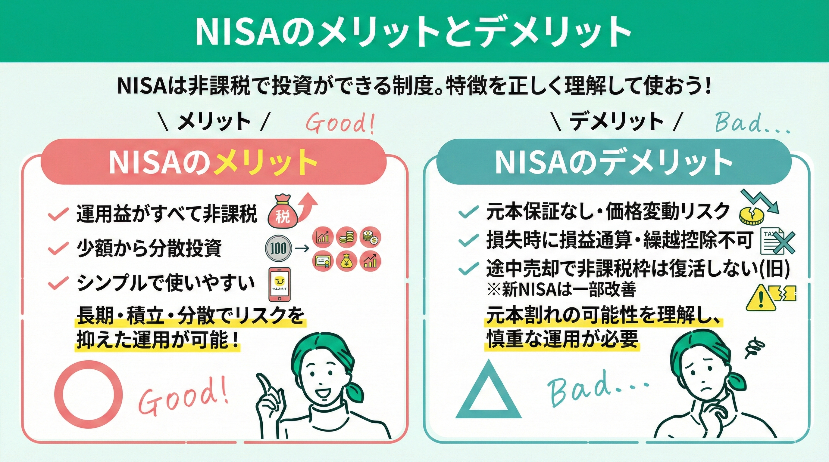 NISAは非課税で投資ができる制度ですが、メリットだけでなくデメリットもあります。