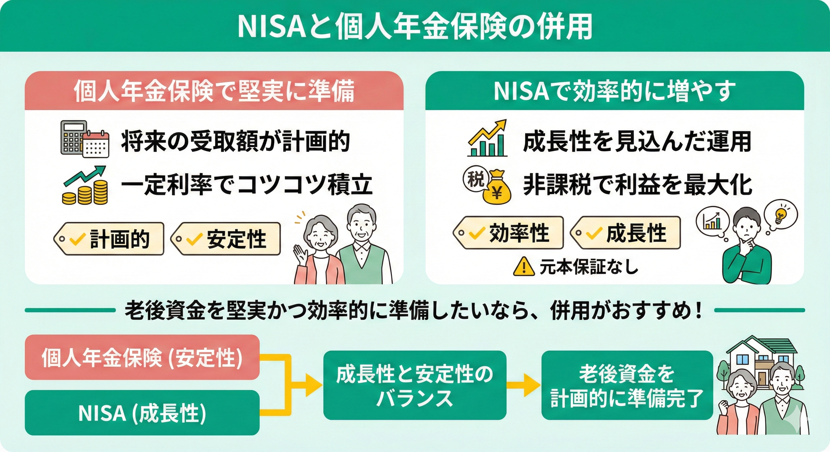 老後資金の準備には、NISAと個人年金保険を組み合わせると安心です。