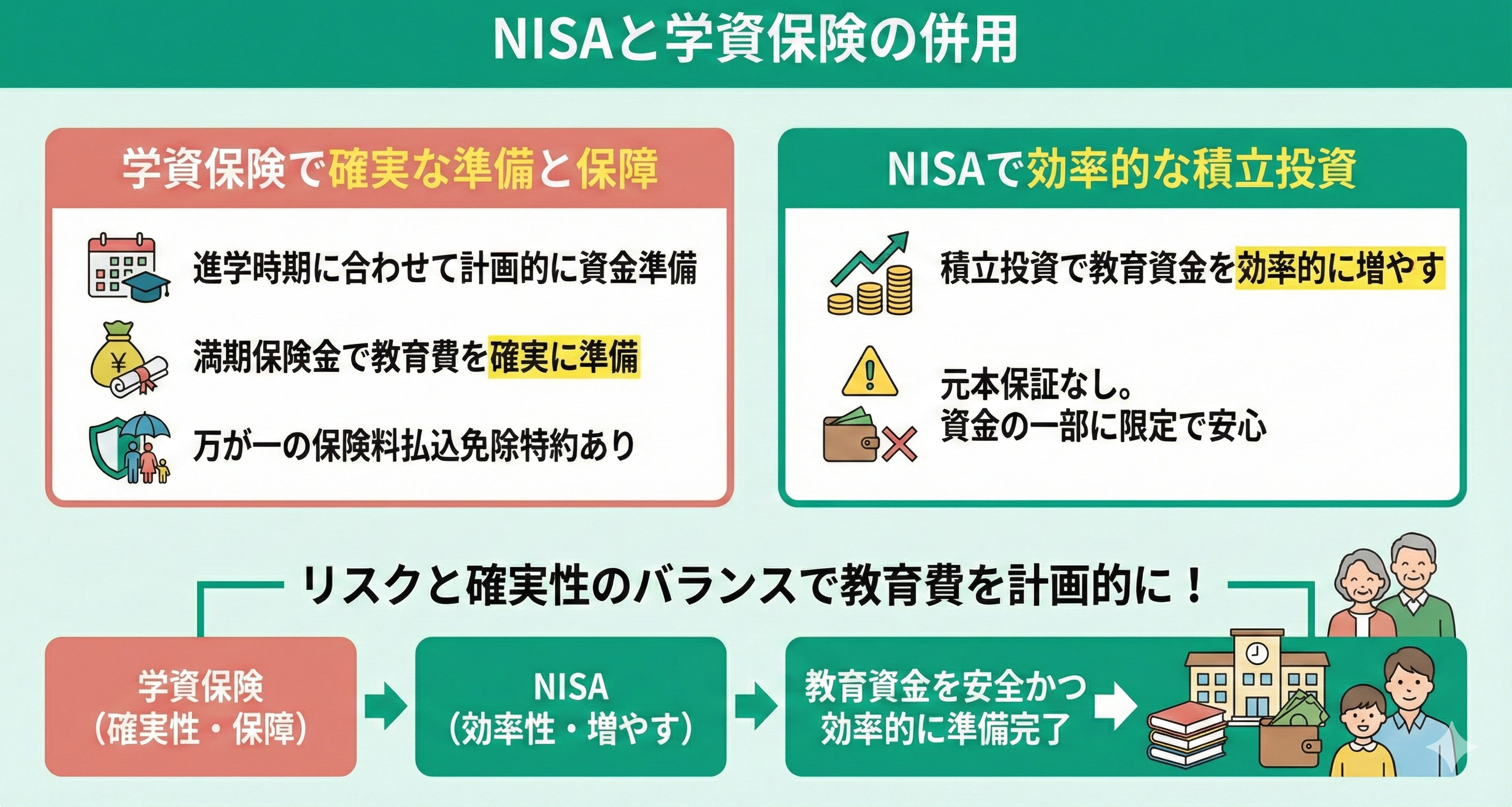 教育資金を安全かつ効率的に準備したいなら、NISAと学資保険の併用がおすすめです。