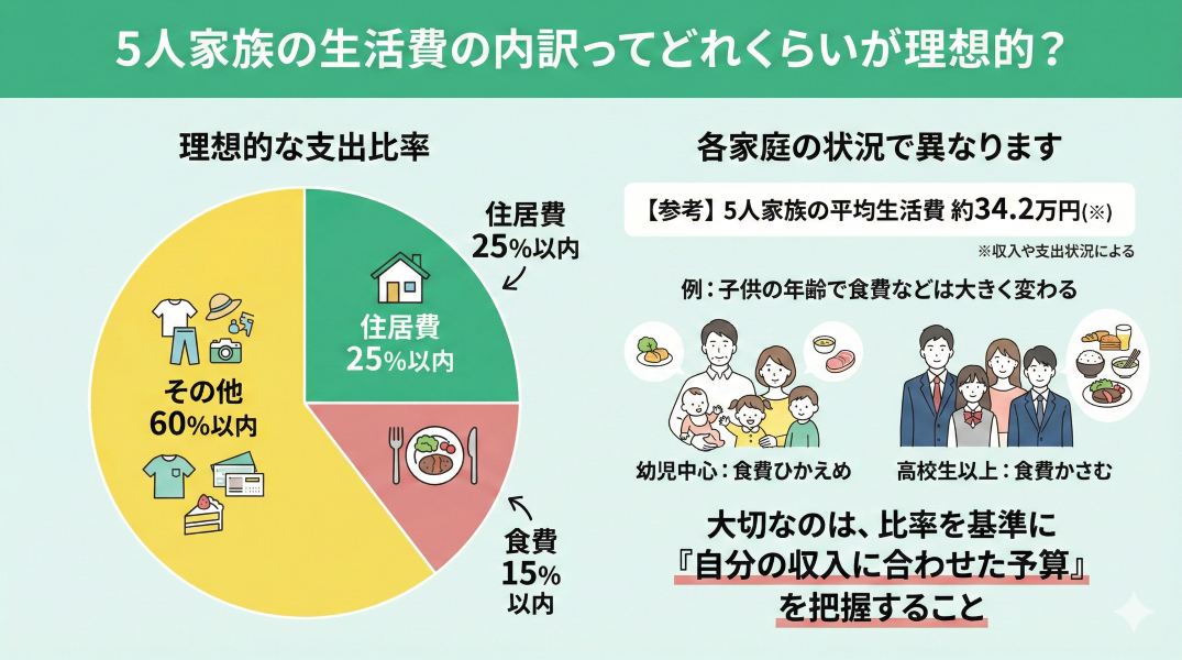 - 5人家族の生活費の「黄金比」を項目別に解説!