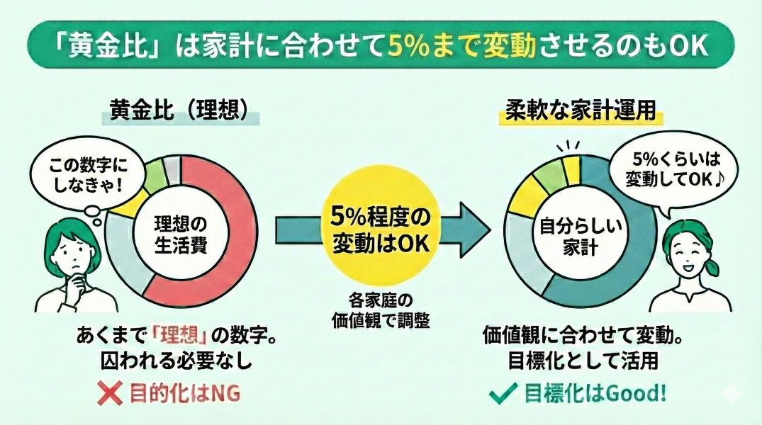 - 「黄金比」は家計に合わせて5%まで変動させるのもOK