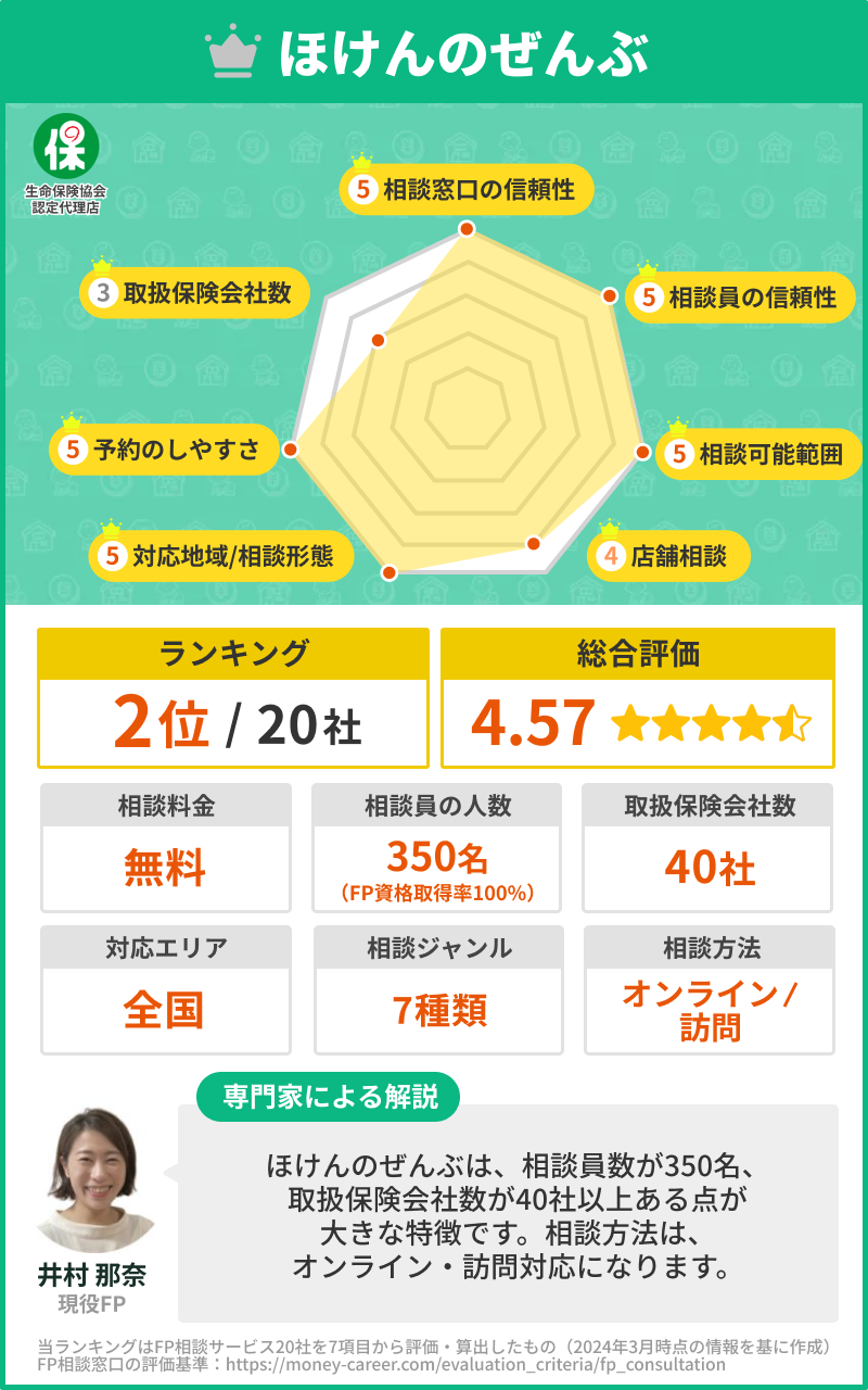 | 公式サイト | マネーキャリア 公式サイト | ほけんのぜんぶ 公式サイト | 保険見直しラボ 公式サイト | ほけんの窓口 公式サイト | マネードクター 公式サイト | FPナビ 公式サイト |