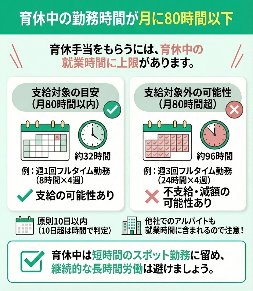 - 育休中の勤務時間が月に80時間以下