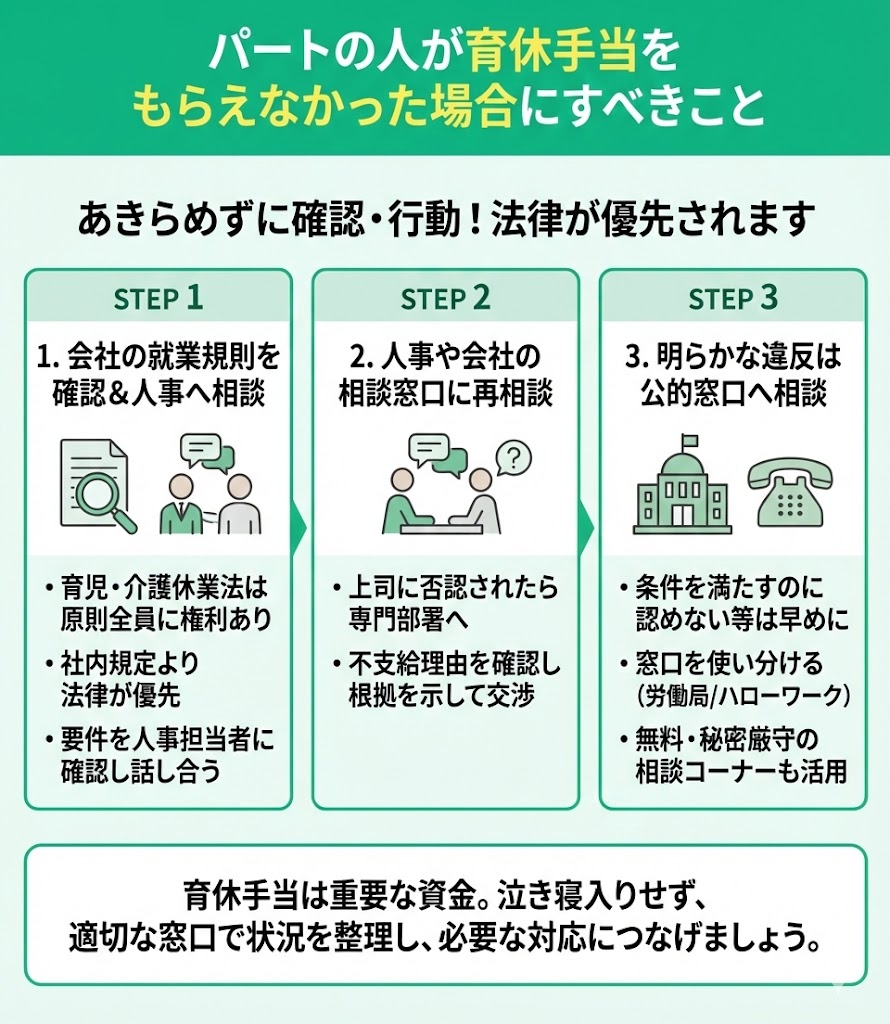パートの人が育休手当をもらえなかった場合にすべきこと