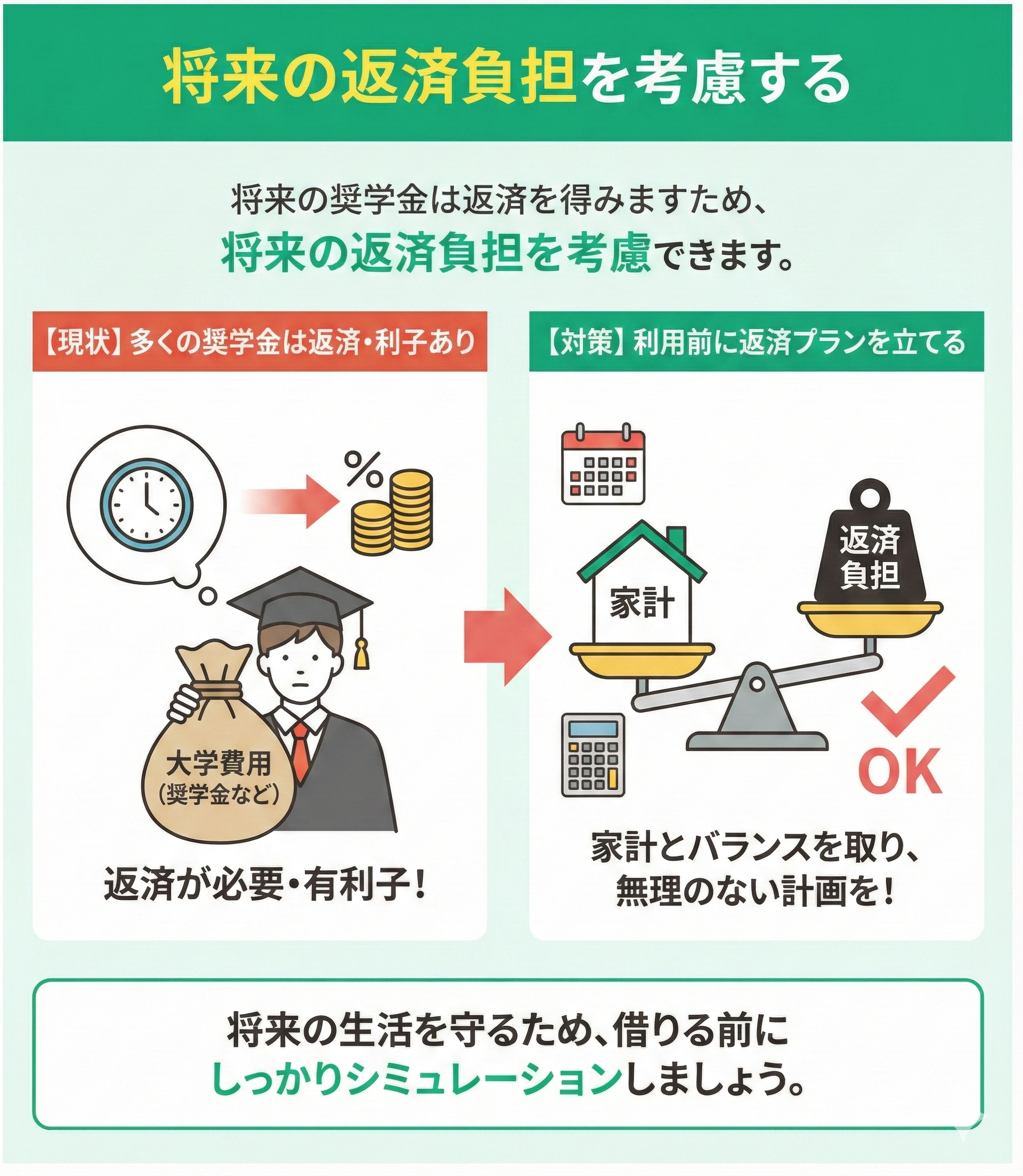 - 大学費用の支援制度・奨学金を活用する際の注意点