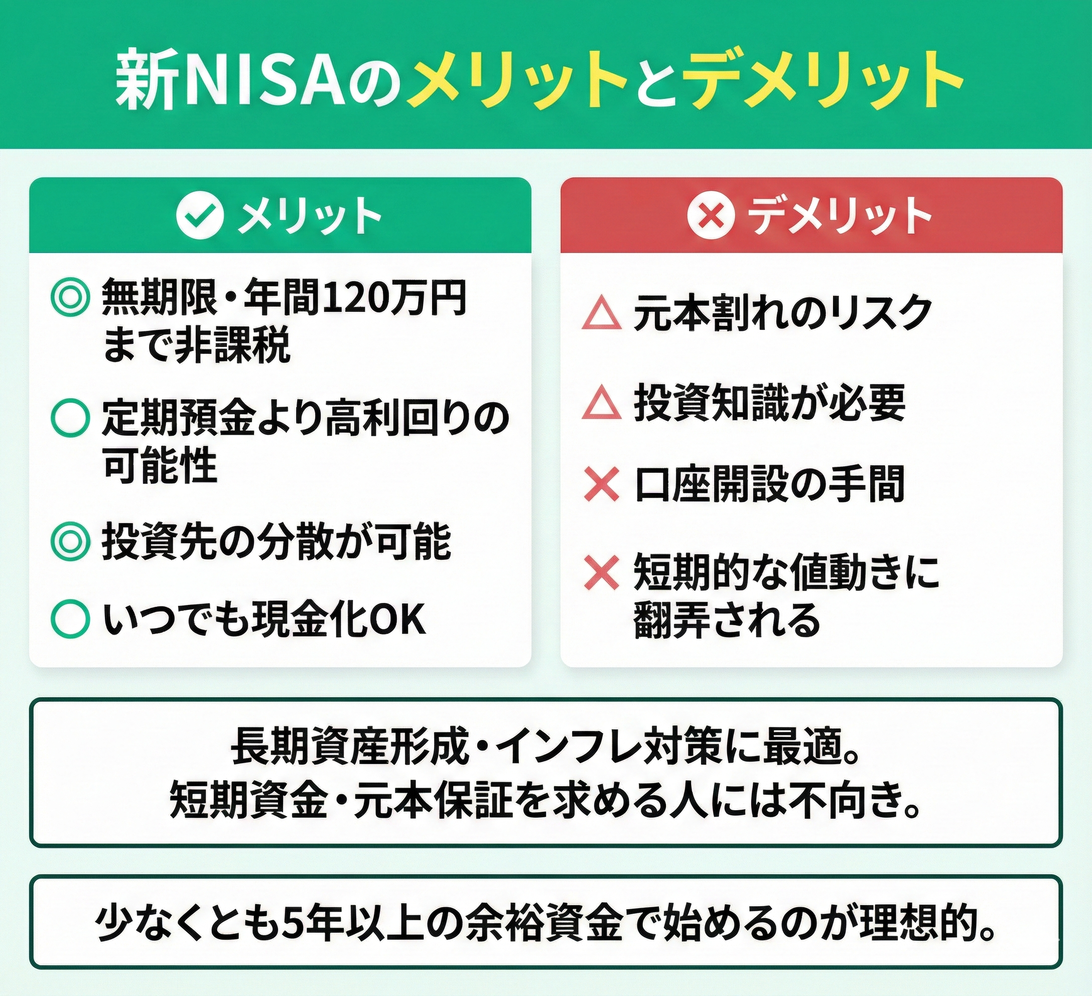 - 新NISAのメリットとデメリット