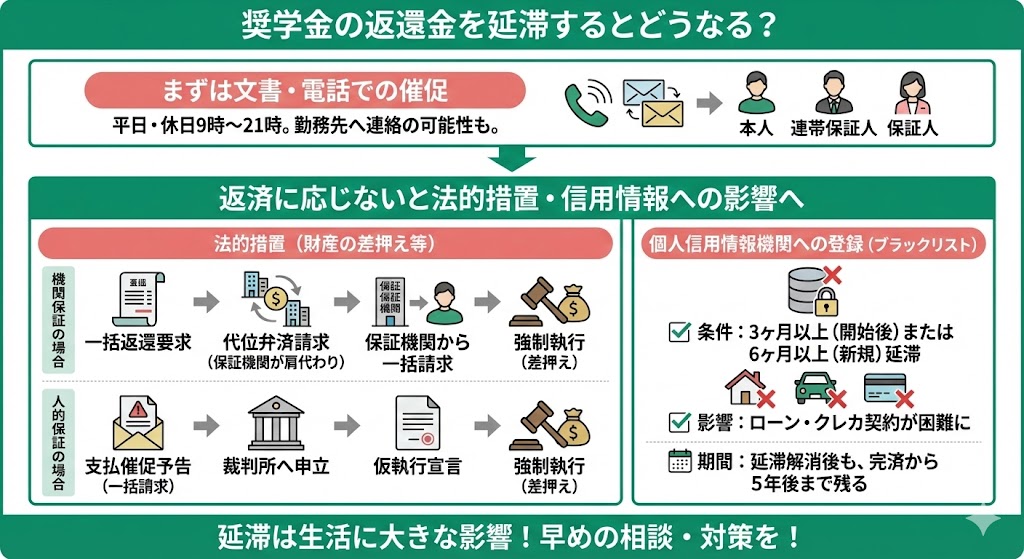 延滞をしてしまった場合の日本学生支援機構の対応を紹介します。