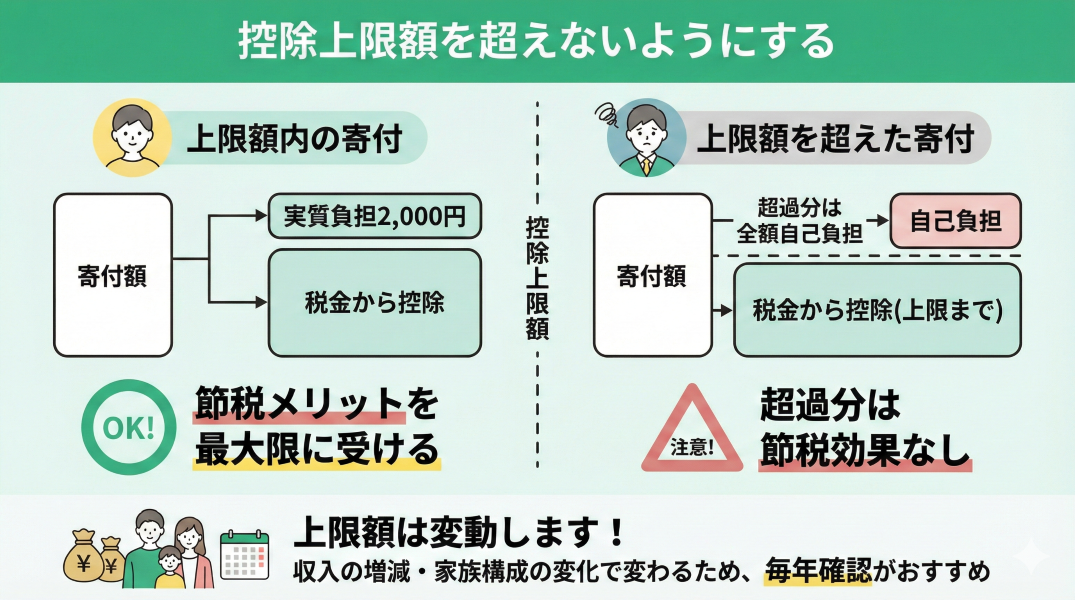 超過分は全額単なる寄付。節税効果は得られないため注意しましょう。