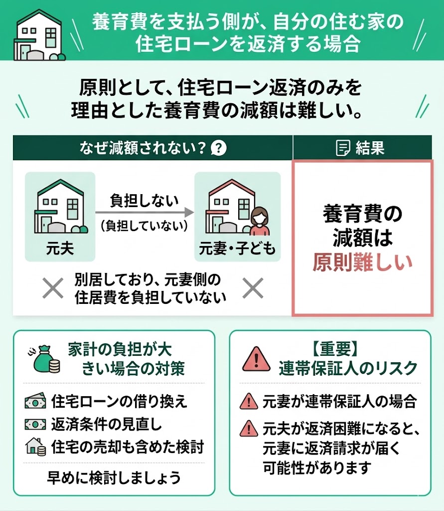 また、住宅ローンを返済しているからといって、当然に養育費の支払いがなくなるわけではありません。