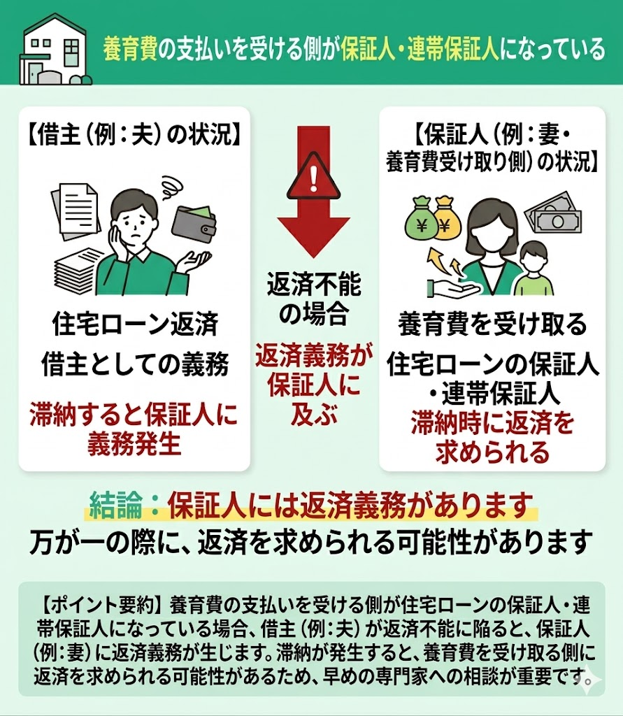 養育費の支払いを受ける側が、住宅ローンの保証人や連帯保証人になっている場合、思わぬトラブルが発生することがあります。