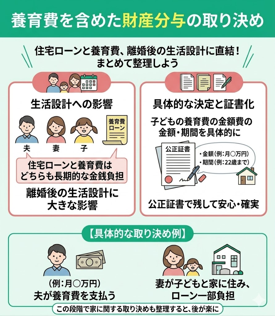 離婚時に住宅ローンが残っている場合は、養育費も含めて財産分与の取り決めを整理しておくことが重要です。