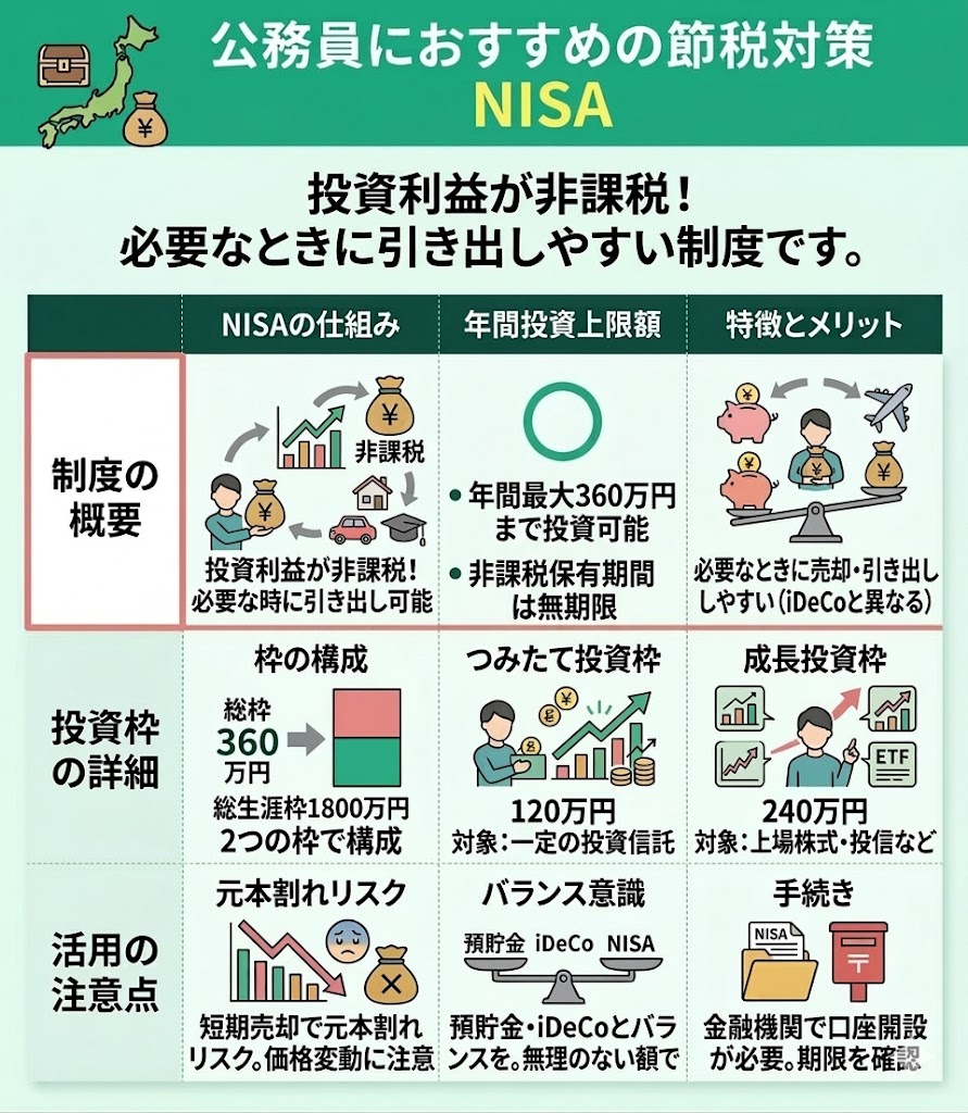 公務員におすすめの節税対策として、NISAが挙げられます。