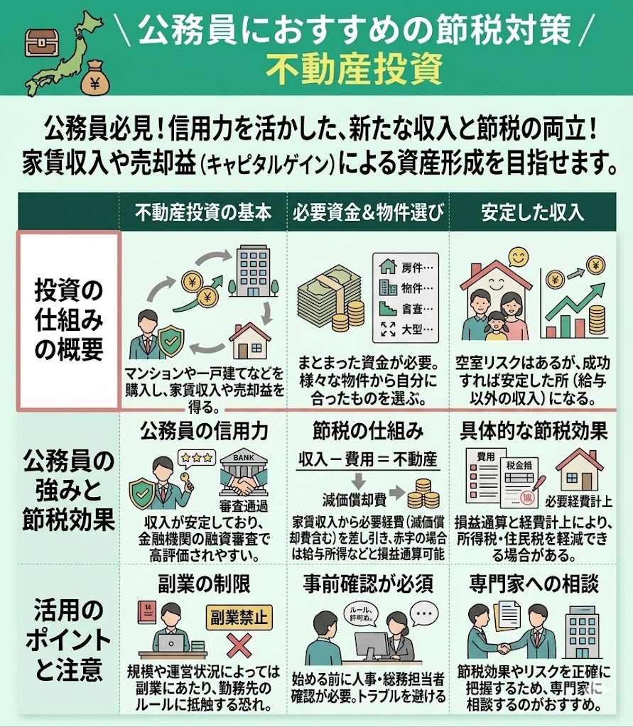 公務員におすすめの節税対策として、不動産投資が挙げられます。