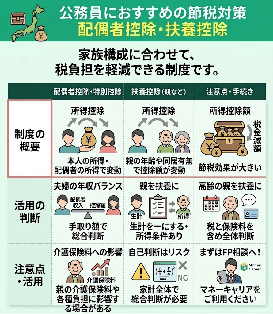 公務員におすすめの節税対策として、配偶者控除・扶養控除が挙げられます。