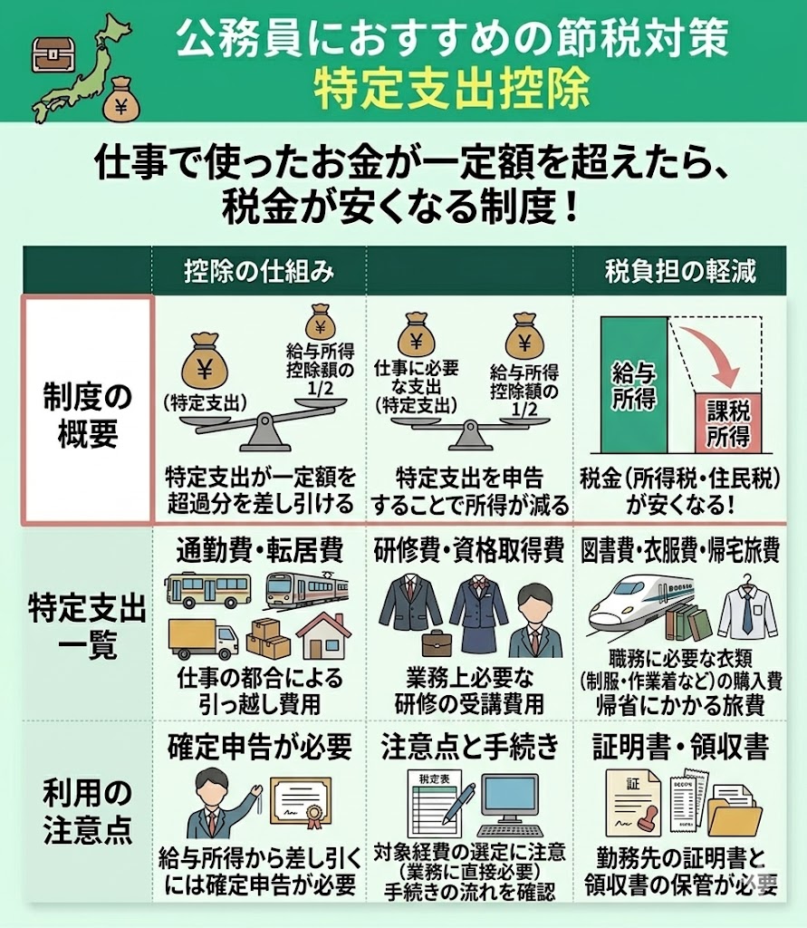 公務員におすすめの節税対策として、特定支出控除が挙げられます。