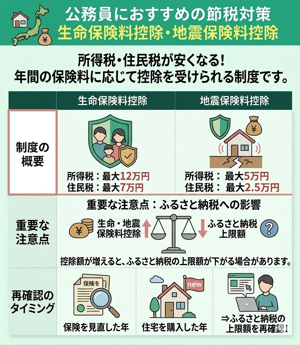 公務員におすすめの控除制度として、生命保険料控除・地震保険料控除が挙げられます。