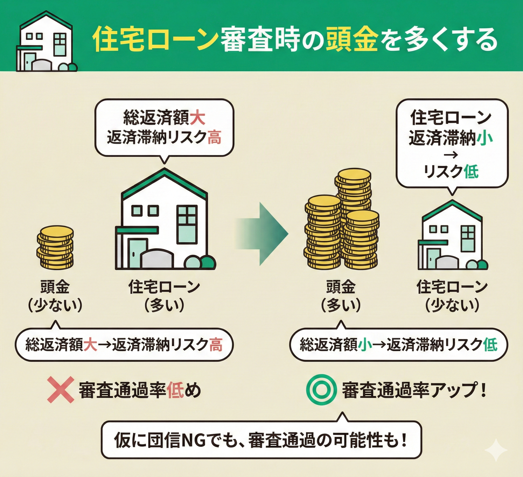 住宅ローン審査時の頭金を多くする