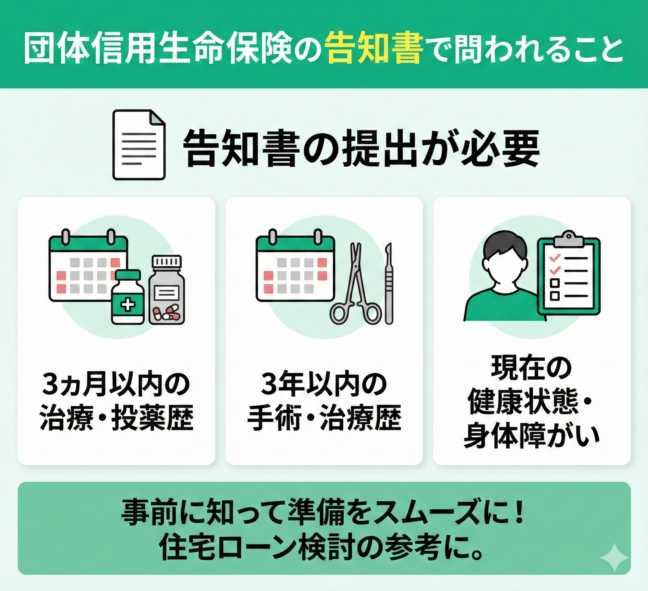 - 団体信用生命保険の告知書で問われること