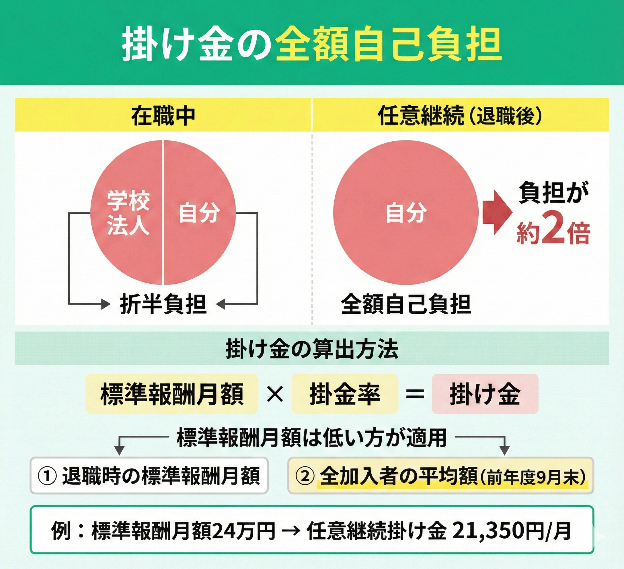 私学共済を任意継続する1つめのデメリットは、掛け金が全額自己負担になることです。
