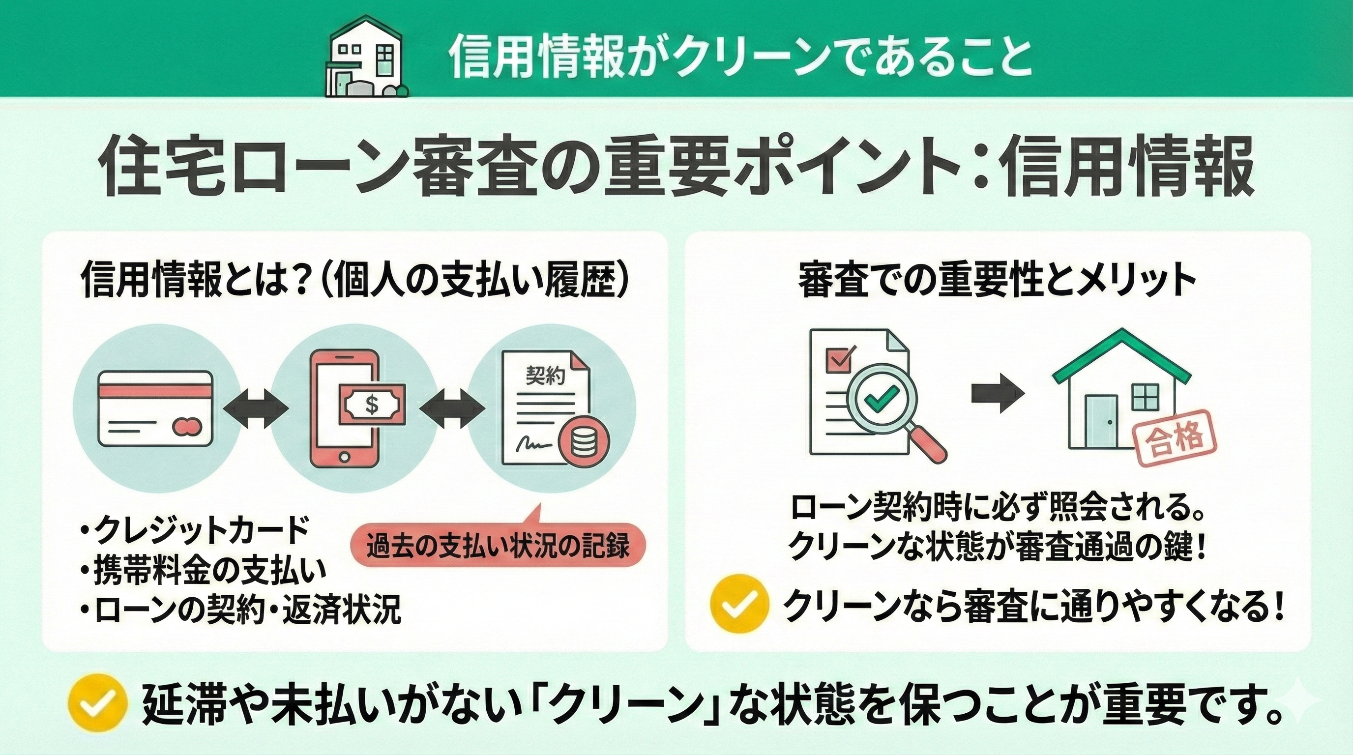 ローン契約の際には必ず信用情報が照会されるため、クリーンな状態であれば審査に通りやすくなります。