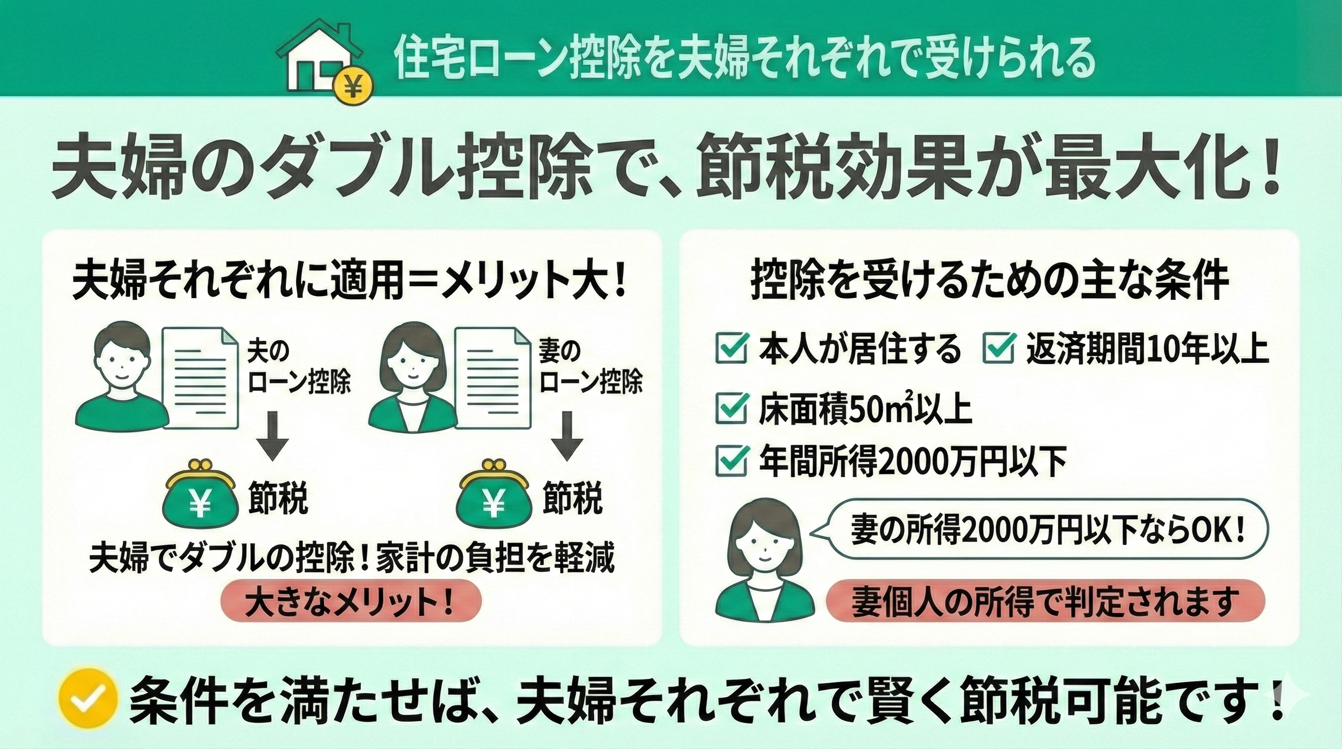 - 住宅ローン控除を夫婦それぞれで受けられる