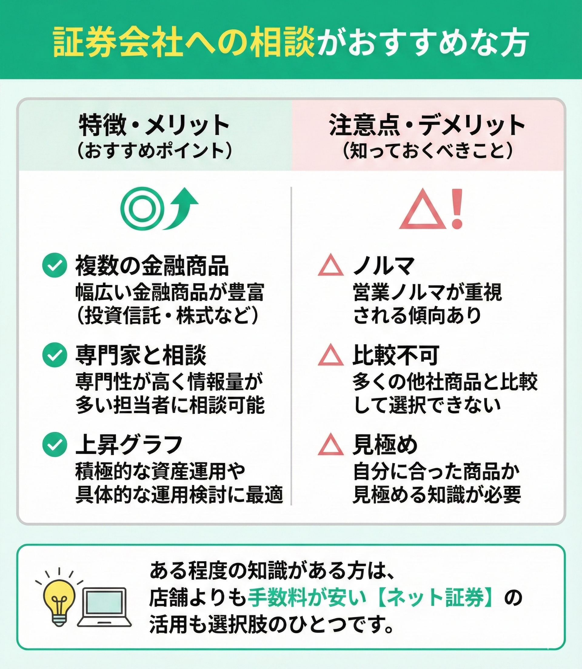 - 証券会社への相談がおすすめな方