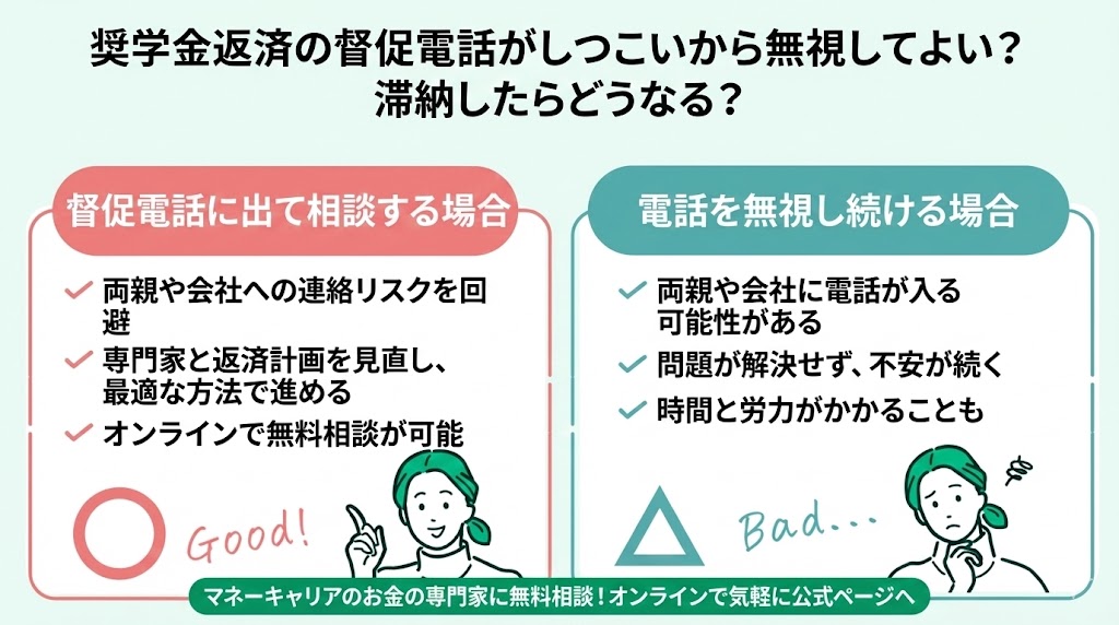 - 奨学金返済の督促電話がしつこいから無視してよい?滞納したらどうなる?