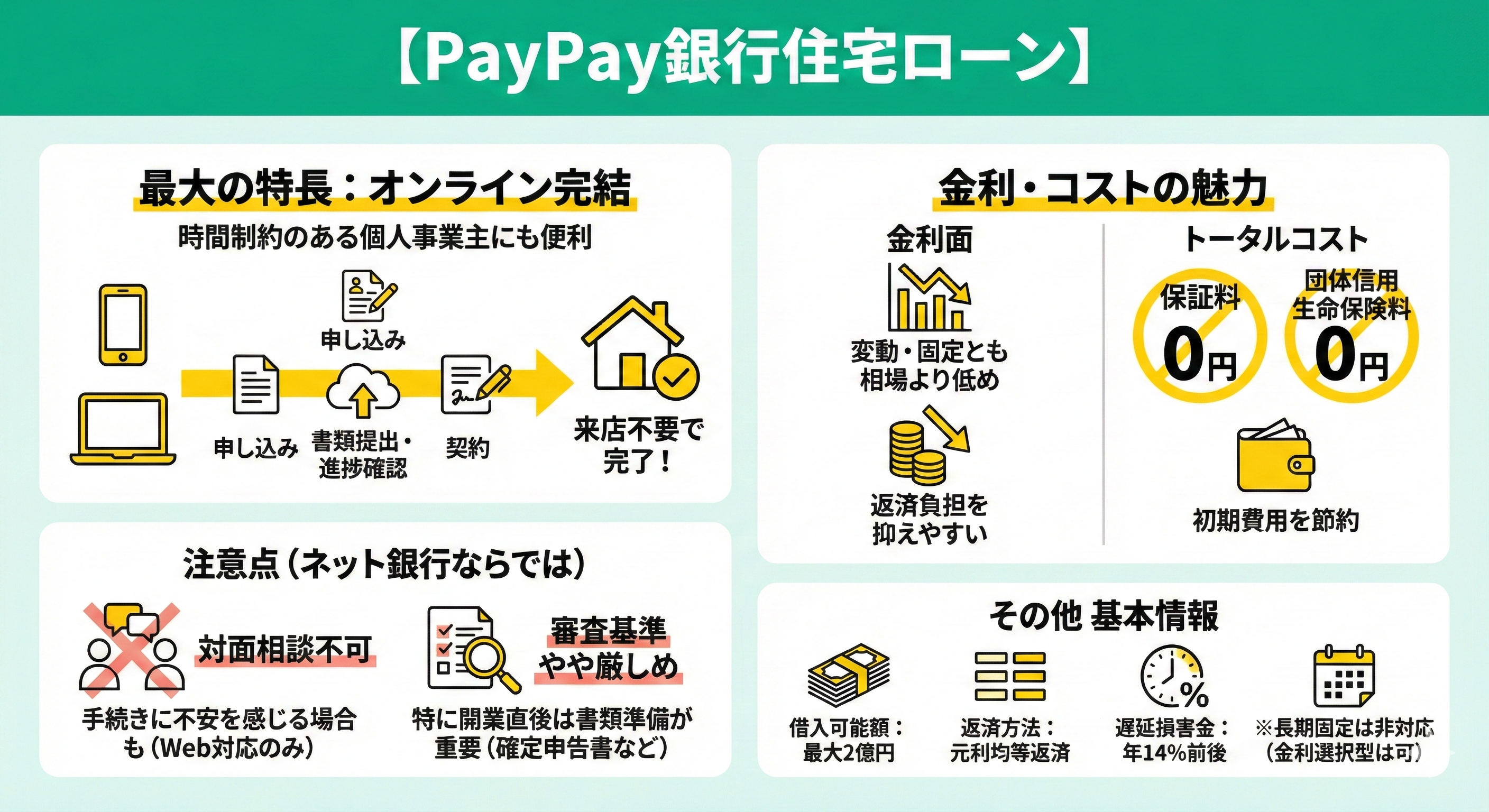 PayPay銀行住宅ローンは、すべての手続きがオンラインで完結できる点が大きな特長です。