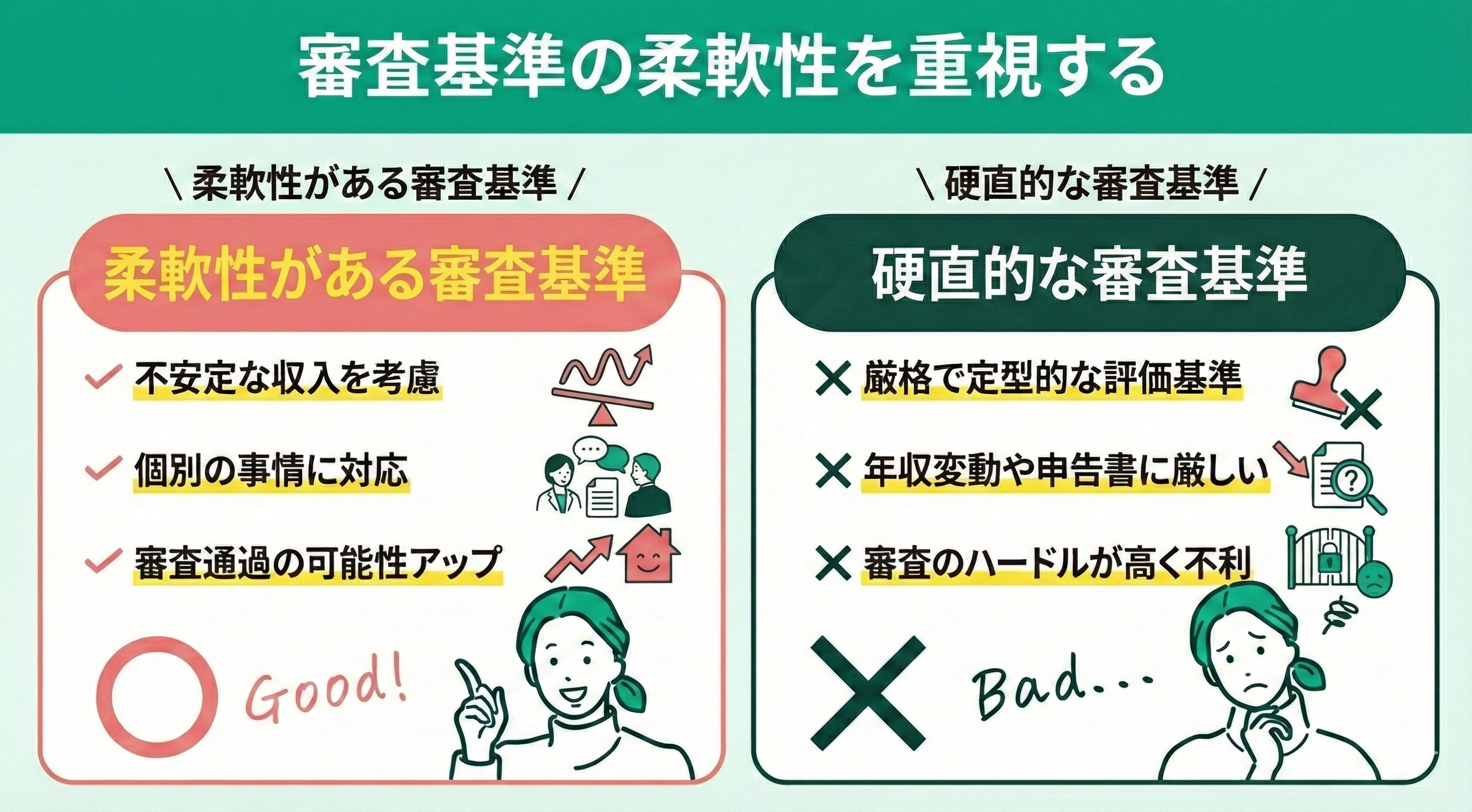 個人事業主が住宅ローンを検討する際には、審査基準の柔軟性を重視することが重要です。