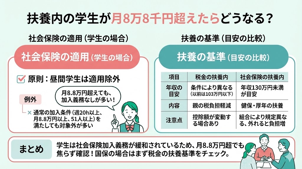 - 扶養内の学生が月8万8千円超えたらどうなる?