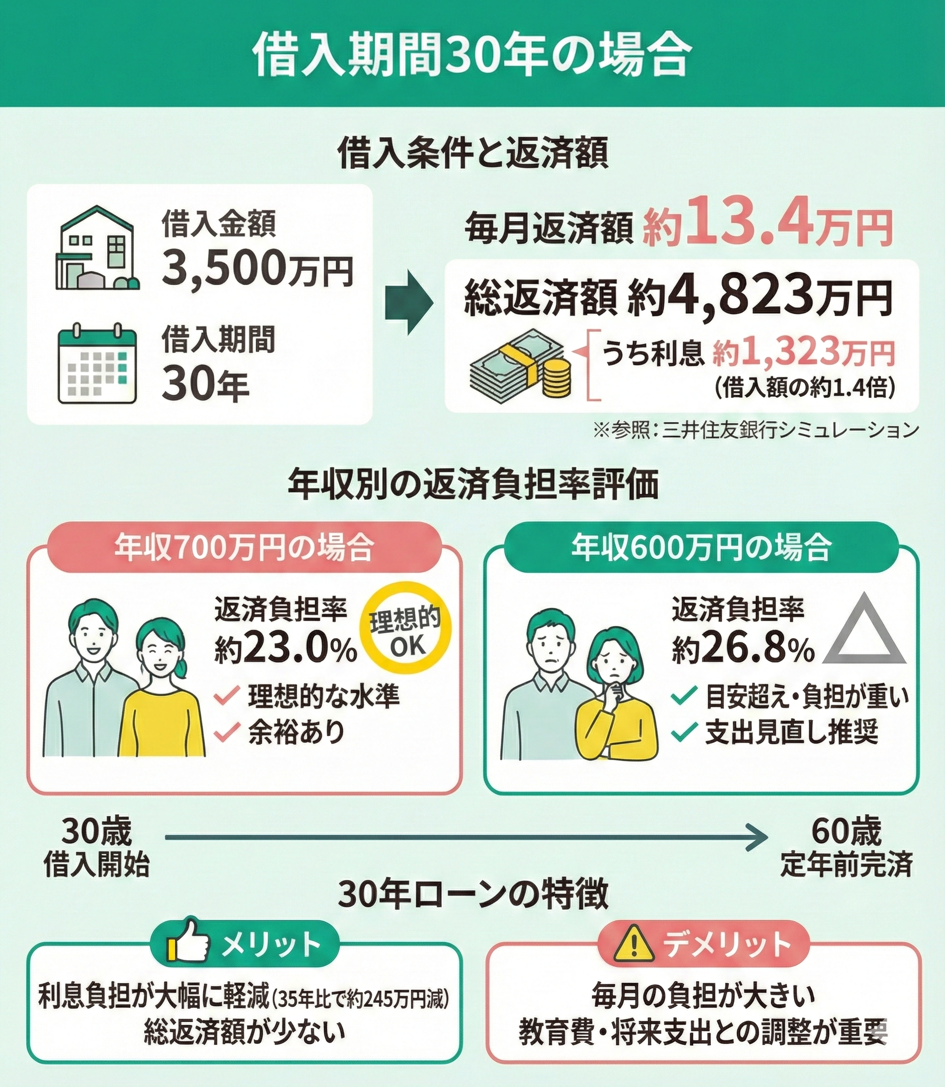 以下は、借入期間30年を前提としたシミュレーション結果です。